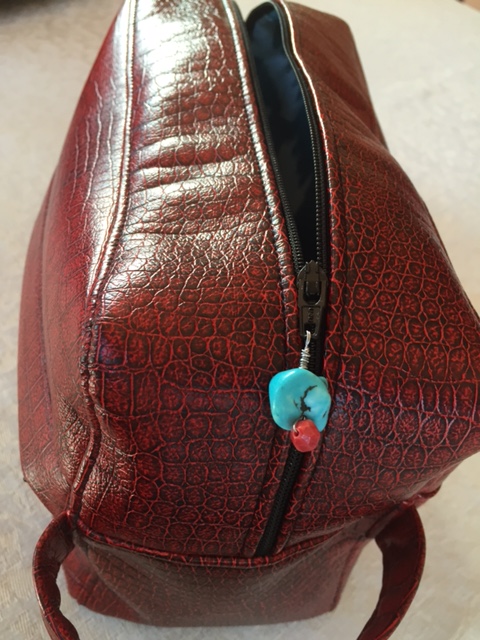 I had some turquoise and coral on hand, so I made little zipper pulls.